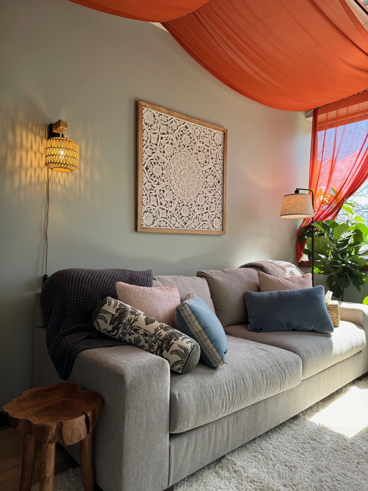 Feel free to pull a footstool or charging cord over to where you need it, stack up a bunch of pillows, be cozy