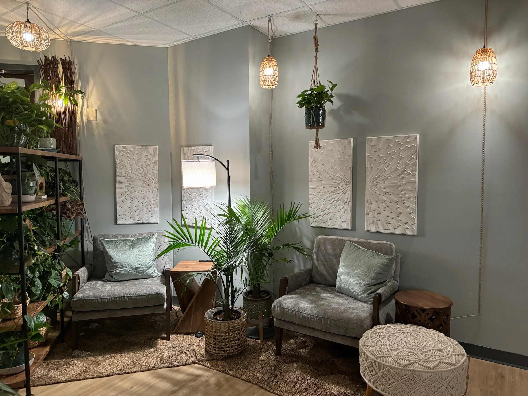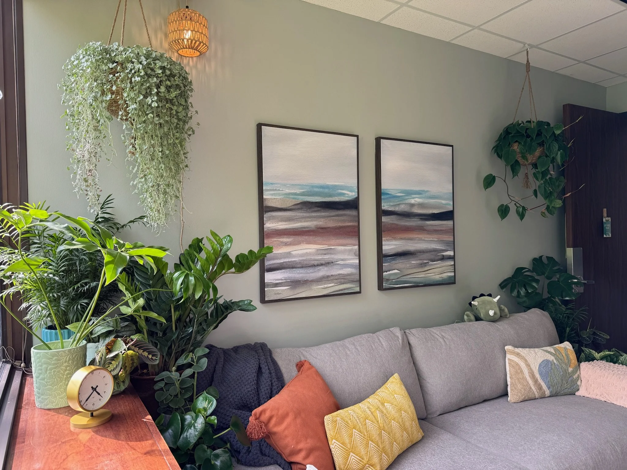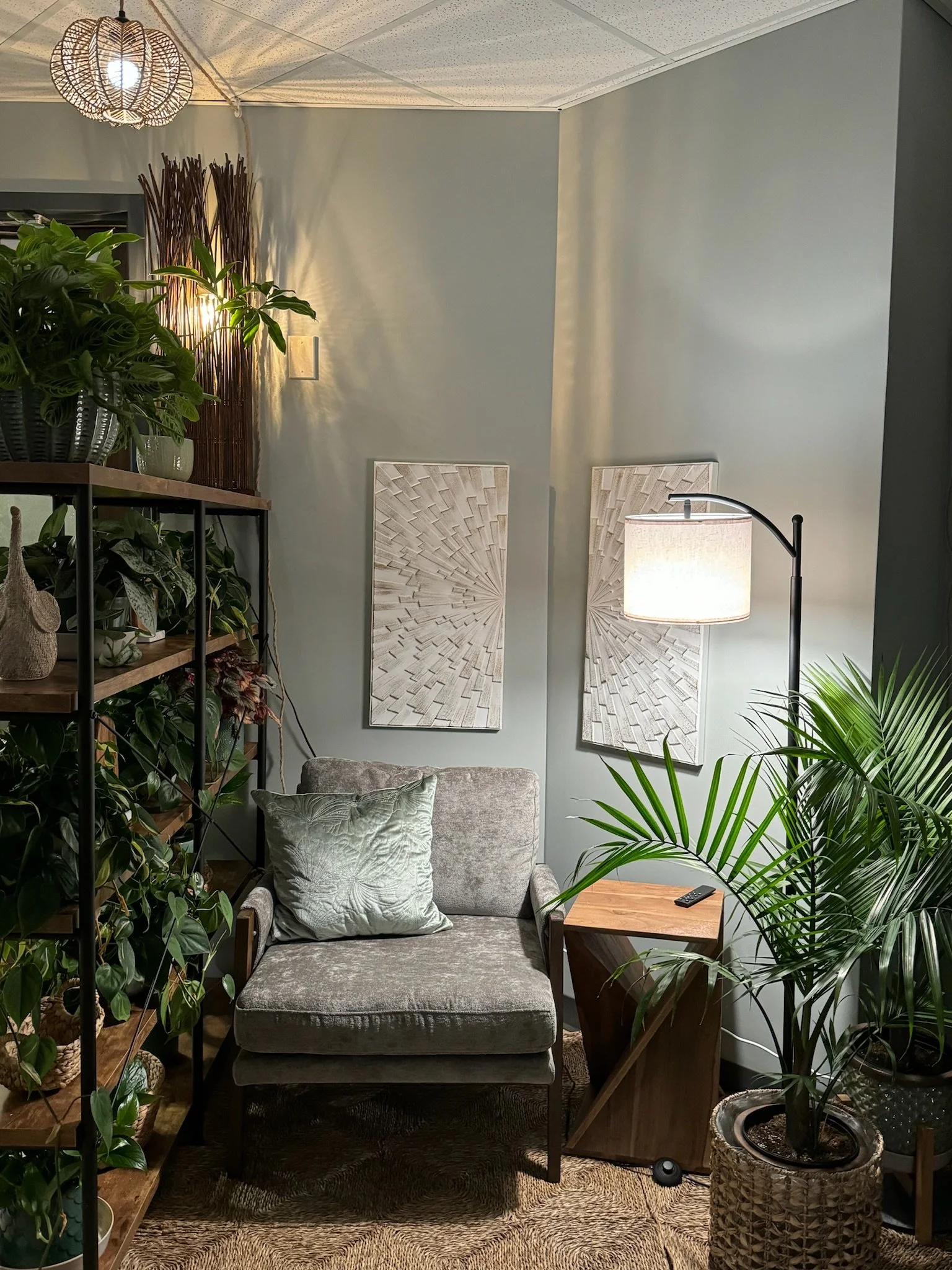 All the lights in the waiting room are on dimmers, so you can customize your sensory experience to just what you need (this also means someone may have turned a light up earlier in the day, so please don’t be shy to change them back to exactly what you need)
