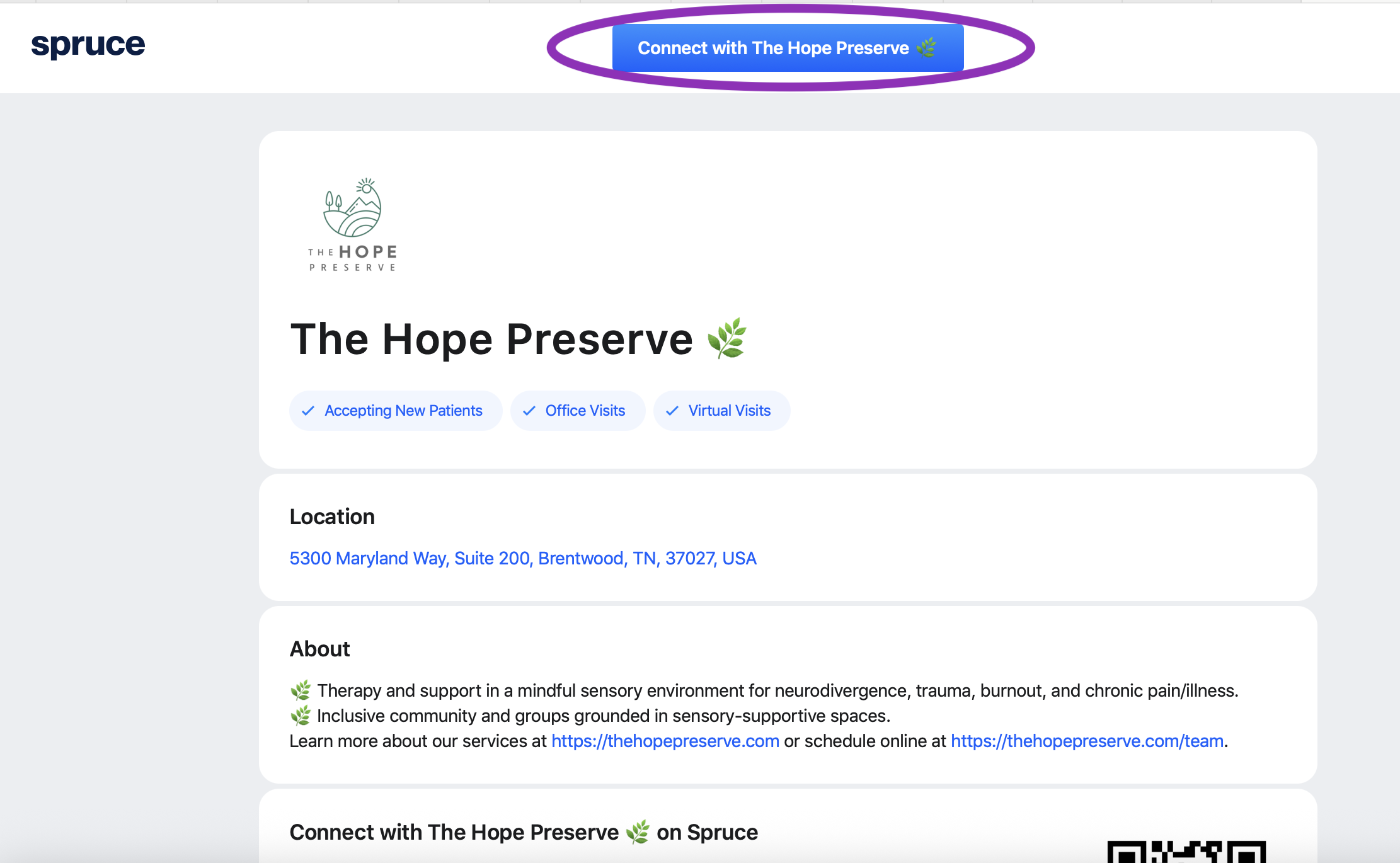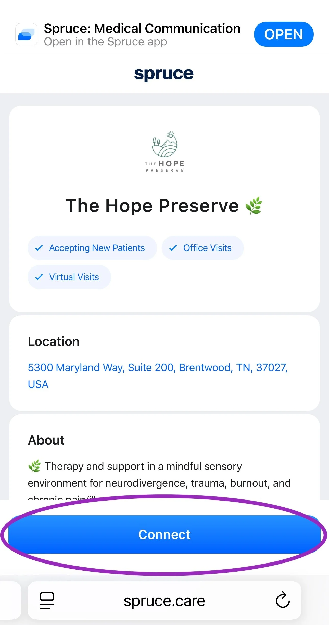 If on laptop/desktop 💻: Click “Connect with The Hope Preserve” button at the top of the page